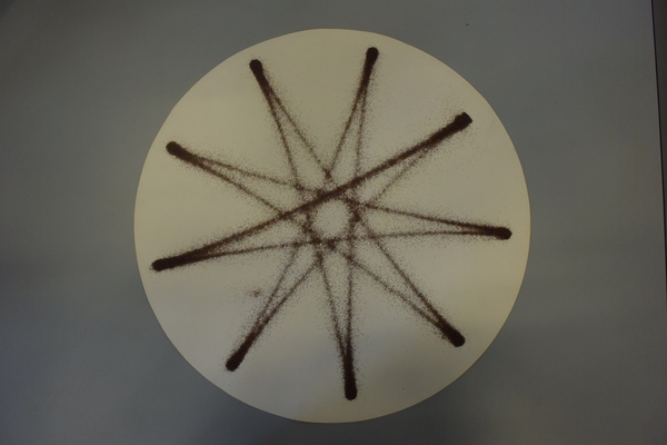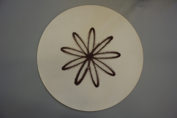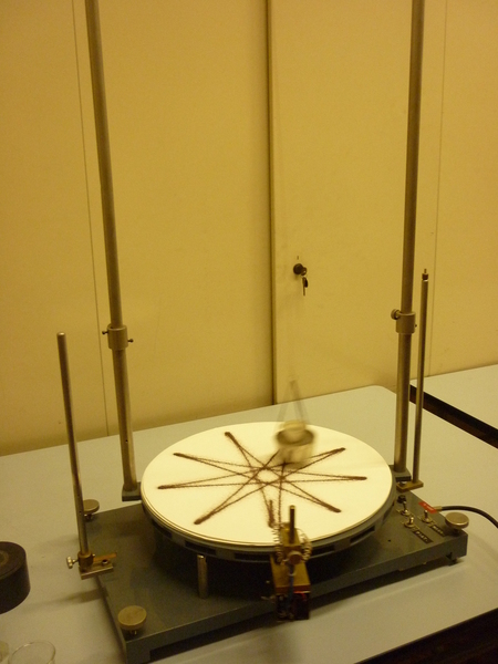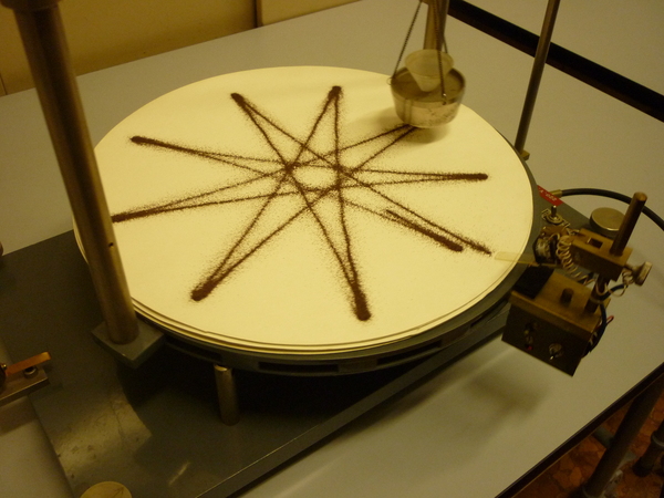 Mentre la piattaforma ruota, si crea sulla piattaforma un disegno a stella dovuto al fatto che il piano di oscillazione del pendolo rimane costante durante la rotazione.