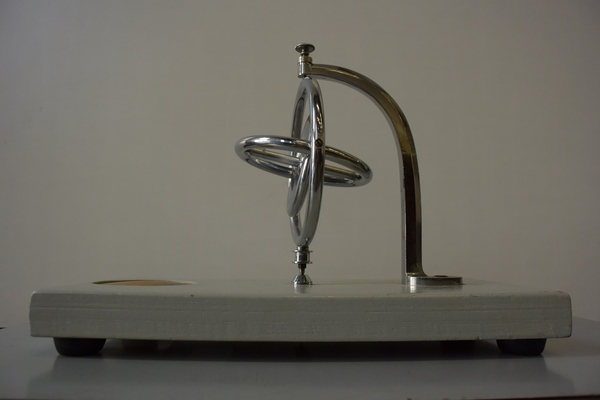 Si mette in movimento il rotore del giroscopio e si muove il supporto a cui il giroscopio è fissato, osservando come si comporta l’asse di rotazione del rotore. Si appende poi un pesetto all’anello di sospensione interno e successivamente si agisce con la mano sull’anello esterno, osservando in ciascuna situazione come cambia la direzione dell’asse di rotazione.