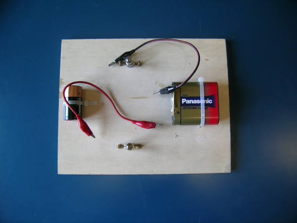 Si provi ad accendere le lampadine presenti sulla tavoletta con il materiale fornito. Si provi prima con una pila e poi con l'altra, usando i fili di collegamento a disposizione. Si osservino i modi in cui si è riusciti ad accendere la lampadina e come devono essere collegati i fili alle batterie, prendendo cosi confidenza con il concetto di circuito elettrico.