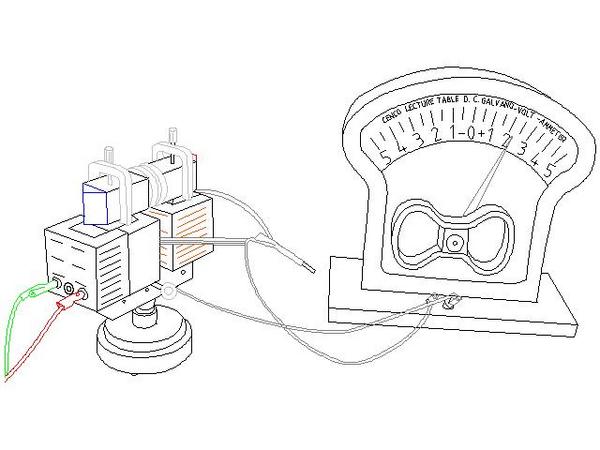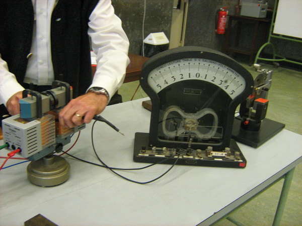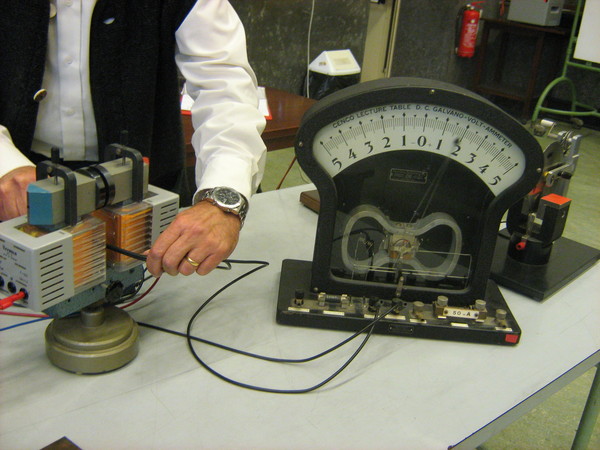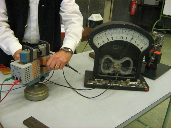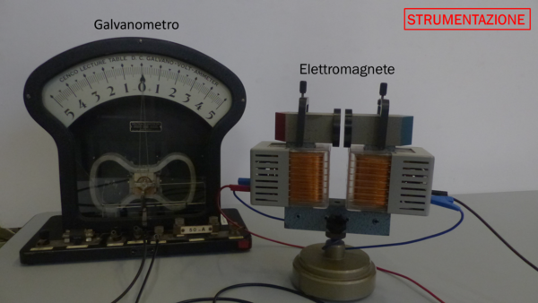 Un lungo filo flessibile viene collegato tramite dei morsetti a un amperometro. Il filo viene fatto passare con una certa velocità tra i due poli di un elettromagnete e si osserva cosa segna l’amperometro. Successivamente si fanno diverse prove avvolgendo il filo in vari modi.