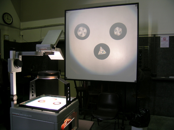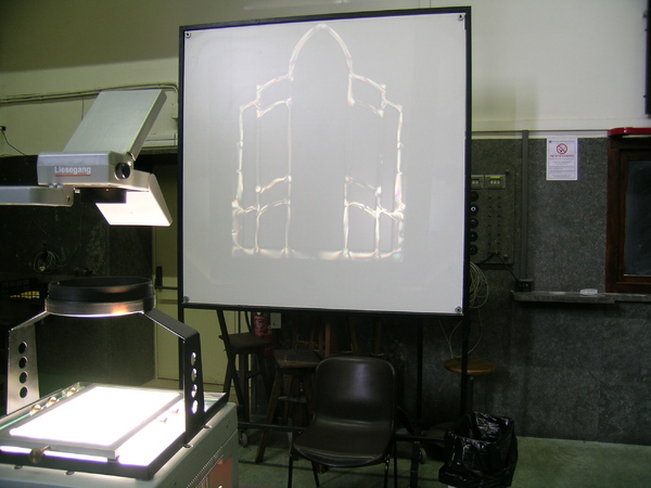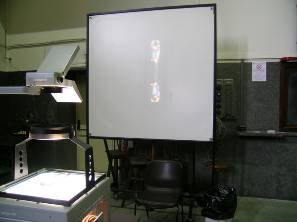 Si posizionano sopra una lavagna luminosa un filtro polarizzatore e, sopra di esso, oggetti di materiale plastico trasparente di varia forma. Essi sono sottoposti a compressione o torsione tramite appositi supporti in metallo. La luce trasmessa dagli oggetti, viene poi fatta passare attraverso un secondo polarizzatore che agisce come analizzatore e infine osservata su uno schermo.
