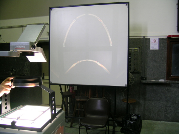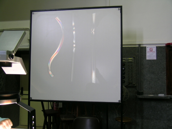 Si osserva che le immagini sullo schermo presentano delle regioni colorate che cambiano a seconda delle forze di compressione e torsione applicate agli oggetti. Le forze producono infatti sia una modifica nello spessore che un’anisotropia nelle proprietà ottiche degli oggetti, che diventano birifrangenti, e possono essere quindi analizzati in luce polarizzata.