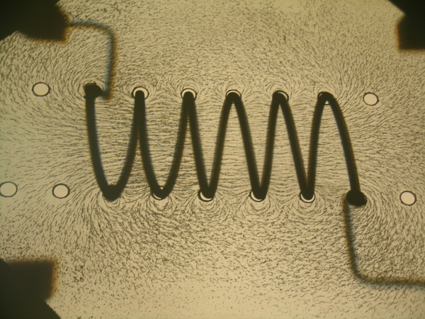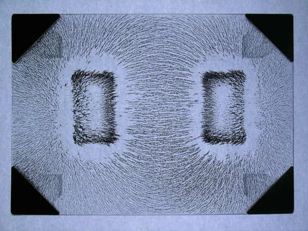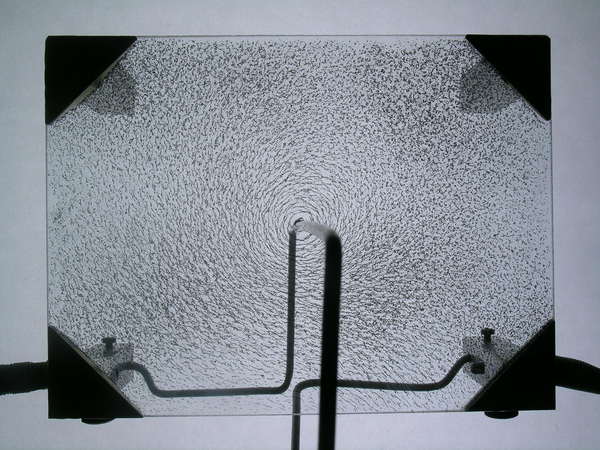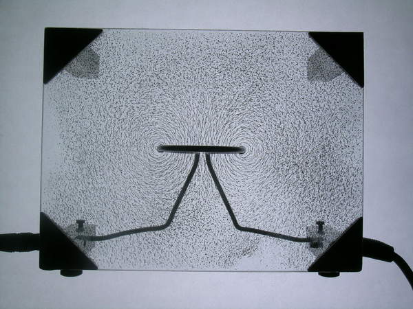 Il campo magnetico generato nei vari casi viene visualizzato attraverso la distribuzione della limatura di ferro, che si orienta secondo le linee di forza del campo.