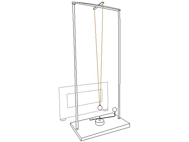 Ad un perno, che può essere messo in rotazione, viene ancorata un'asta metallica alla cui estremità è posta una sfera. In coincidenza con l’asse di rotazione del perno, viene sospeso un pendolo a cui è appesa una sfera di diametro identico alla prima. Il periodo di rotazione del perno viene regolato in modo che coincida con il periodo di oscillazione del pendolo. Uno schermo traslucido viene posto davanti all’apparato e una lampada viene accesa dietro di esso in modo che si veda solo l’ombra delle due sferette quando l’apparato viene posto in movimento. Dopo aver osservato il moto dell’ombra proiettata dalle due sferette, si osserva il moto reale del sistema senza lo schermo.